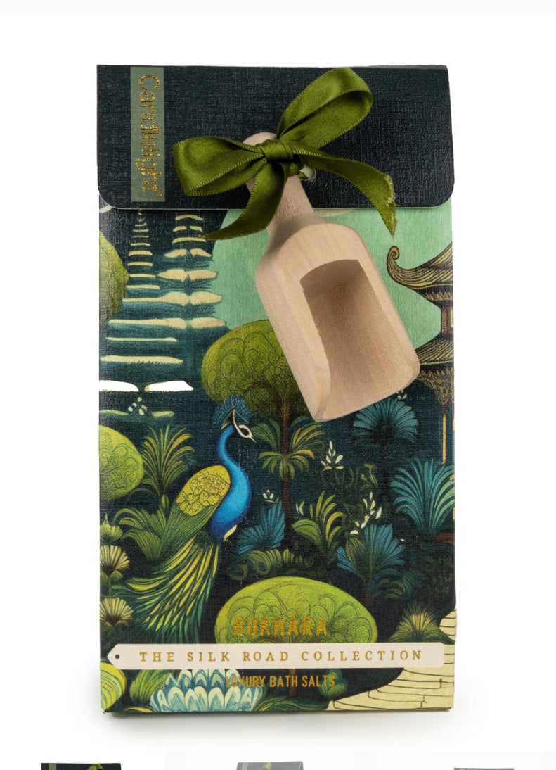 Sink into a restorative soak with the 500g Bath Salts with Scoop, Bukhara – Windermere Scent from Candlelight’s Silk Road Collection. Mineral-rich crystals dissolve swiftly to soften skin and ease tired muscles, while the Windermere fragrance, cool lake air and dew-fresh greenery drifts through the steam for a clean, uplifting finish. Beautifully presented in a richly illustrated gift bag with a satin ribbon and a reusable wooden scoop for effortless portioning, it looks as indulgent as it feels. A thoughtful present or self-care treat, this elegant blend brings spa-level calm to your bathroom ritual.